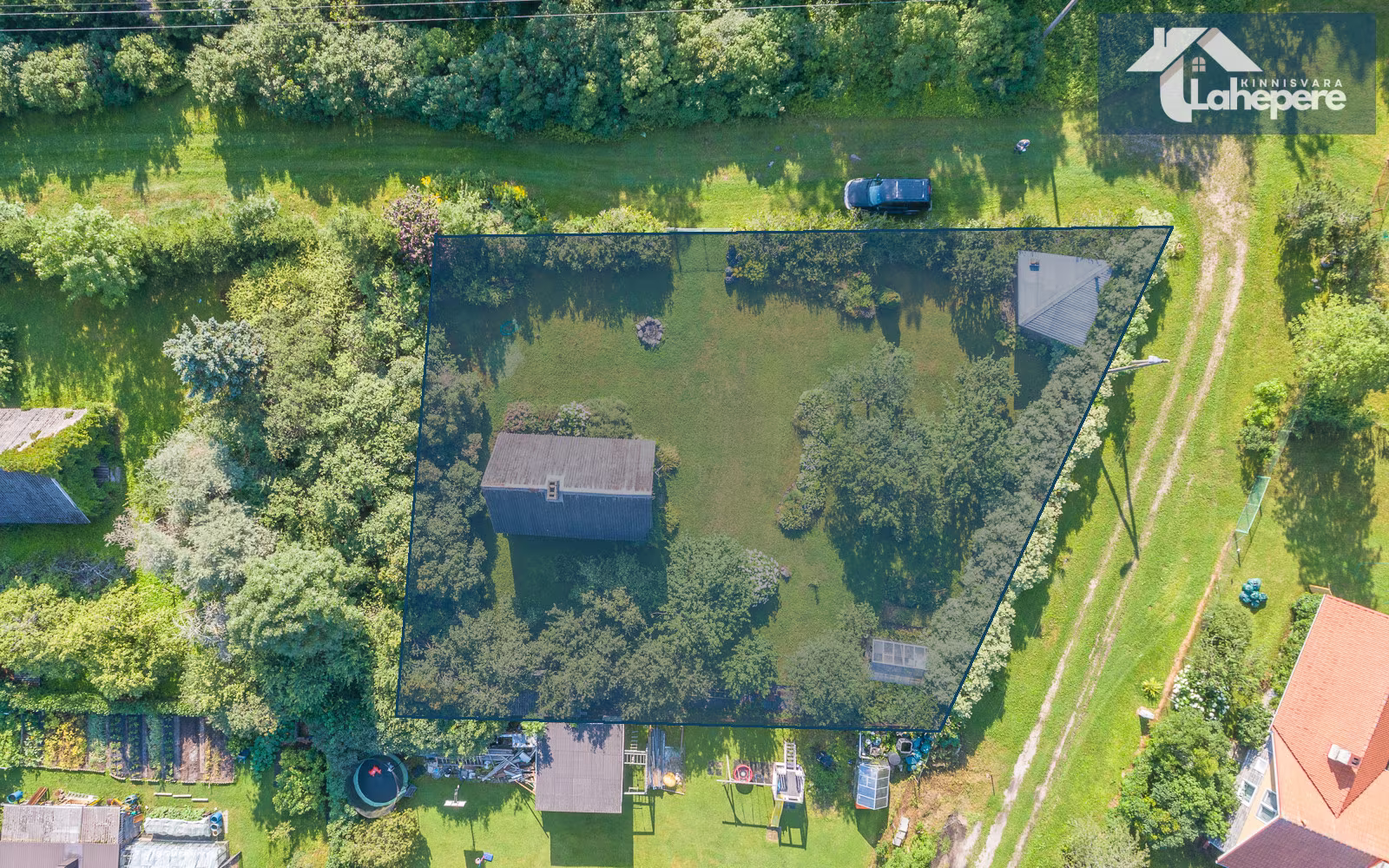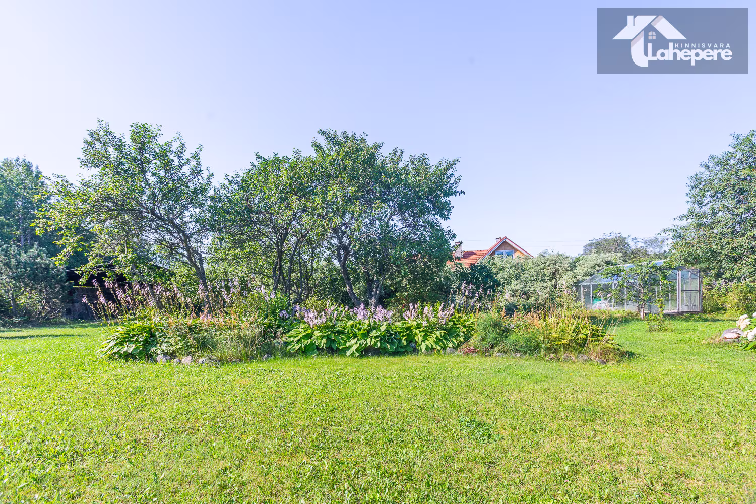 Hooldatud õueala on tasase reljeefiga, olemas on grillinurk ja kasvuhoone. Kinnistul asub palju viljapuid.